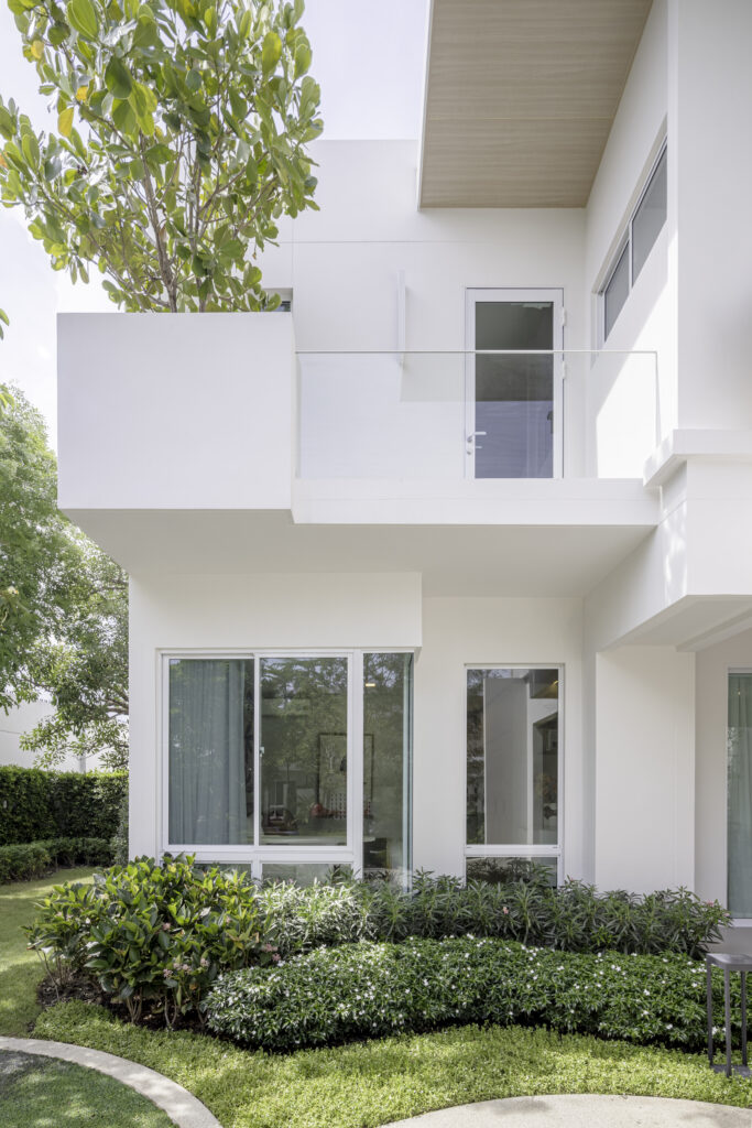ทั้งนี้ทางโครงการเลือกใช้ กรอบบานประตูหน้าต่าง TOSTEM รุ่น WE70 สี Natural White ที่วางอย่างพิถีพิถันเข้ากับเส้นสายเรียบง่ายของบ้าน เพิ่มความโปร่ง รับแสงธรรมชาติ และไม่รบกวนความสะอาดตาของดีไซน์ Minimal Modern  ส่วน ประตู GIESTA สี Silky White ช่วยสร้างจุดเด่นให้ทางเข้ากลมกลืนกับโทนสีขาวผสานลายไม้ของตัวบ้าน พร้อมให้ฟังก์ชันครบทั้งการใช้งานและความปลอดภัย ทำให้บ้านทุกมุมสะท้อนความทันสมัยและอบอุ่นไปพร้อมกัน