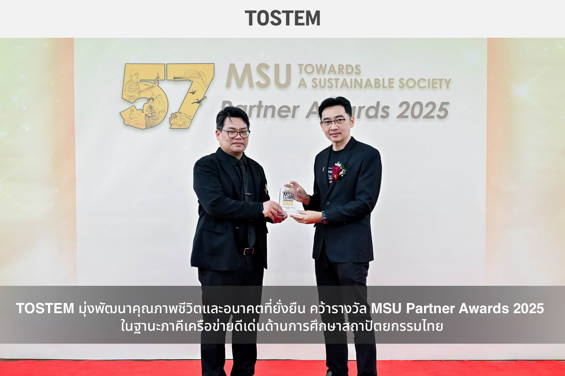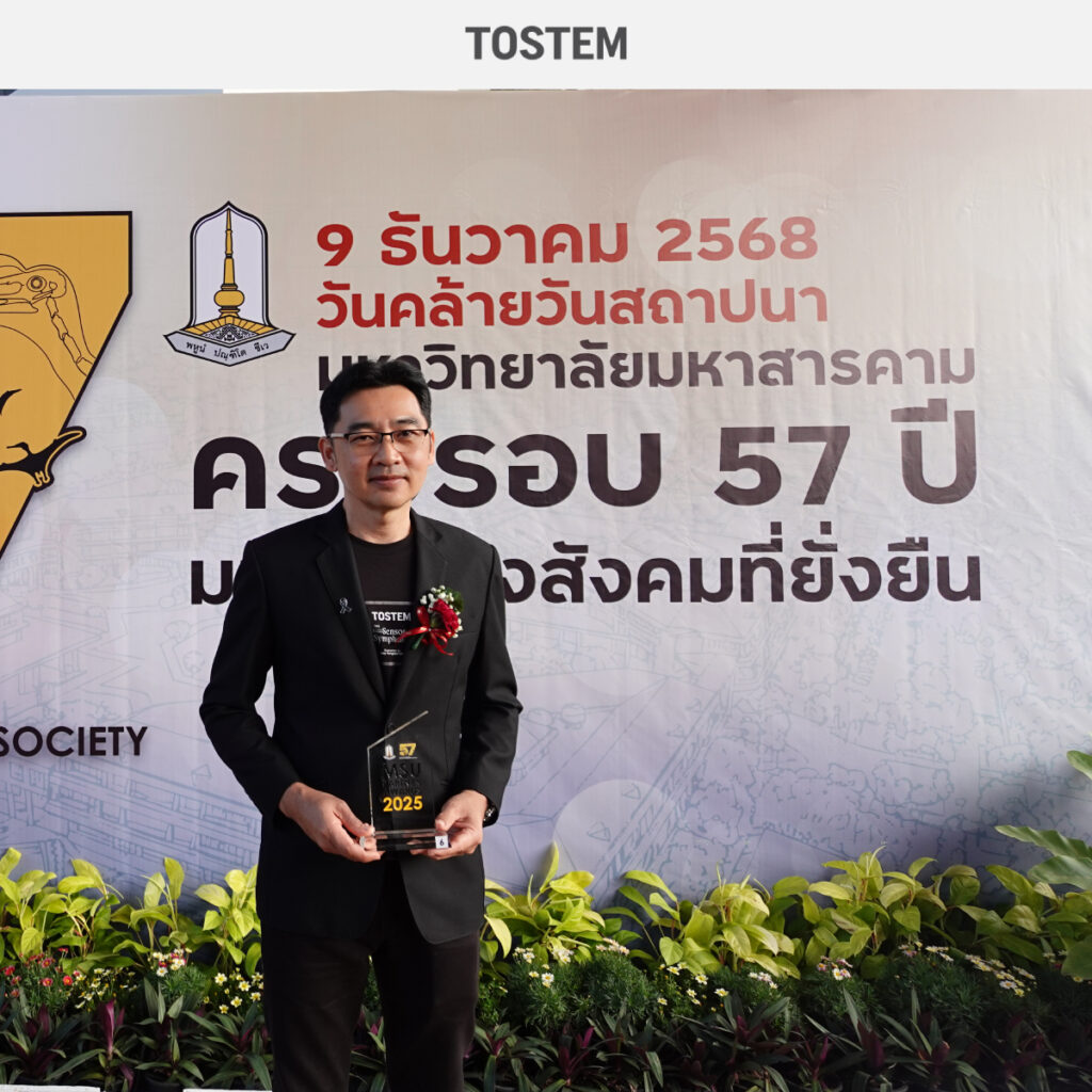 การได้รับรางวัลครั้งนี้สะท้อนถึงความสำเร็จของโครงการ TOSTEM Knowledge Sharing ที่บริษัทได้นำเสนอนวัตกรรมและเทคโนโลยีประตูหน้าต่างจากผู้เชี่ยวชาญ เพื่อให้นิสิตได้รับความรู้และลงมือปฏิบัติจริง สร้างความพร้อมก่อนก้าวสู่ตลาดแรงงาน รวมถึงการเข้าร่วมงานมหกรรมวัสดุก่อสร้าง – Material Fair ที่บริษัทฯ ได้สนับสนุนอย่างต่อเนื่องให้กับคณะสถาปัตยกรรมศาสตร์ ผังเมืองและนฤมิตศิลป์ มหาวิทยาลัยมหาสารคาม