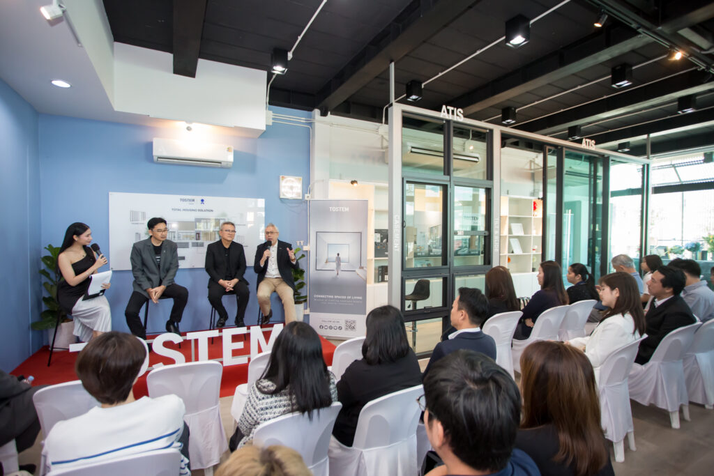 คุณอเส สุขยางค์ ได้แชร์ถึง 5 เทรนด์สถาปัตยกรรมสำคัญที่กำลังเกิดขึ้นในประเทศไทย ได้แก่ Tropical Modernism (สถาปัตยกรรมเขตร้อนร่วมสมัย), Blurred Boundaries (การลบเส้นแบ่งระหว่างภายในกับภายนอก), Wellness Architecture (การออกแบบเพื่อสุขภาวะ), Flexible & Adaptive Spaces (พื้นที่ที่ปรับเปลี่ยนได้), และ Sustainable Design (การออกแบบอย่างยั่งยืน) โดยเน้นย้ำว่าผลิตภัณฑ์อย่าง TOSTEM ATIS Series ที่มีระบบ Flat Sill และ Airtightness สามารถตอบโจทย์เทรนด์เหล่านี้ได้อย่างสมบูรณ์แบบ