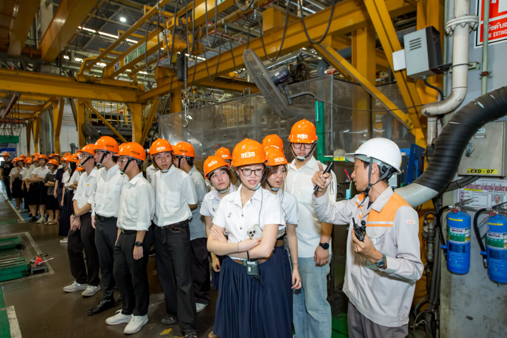 หลังจากภาคการเรียนรู้ภาคบรรยายและภาคปฏิบัติเกี่ยวกับกรอบประตูหน้าต่างอะลูมิเนียมแล้วนั้น  นิสิตได้เยี่ยมชมสายการผลิตจริง เพื่อสัมผัสกระบวนการผลิตตั้งแต่การหลอม การขึ้นรูป และการตรวจสอบคุณภาพ ตลอดจนระบบการควบคุมมาตรฐานในแต่ละขั้นตอน ซึ่งช่วยให้เห็นภาพการทำงานจริงของอุตสาหกรรม และเข้าใจความเชื่อมโยงระหว่างการออกแบบกับกระบวนการผลิตได้อย่างครบถ้วน