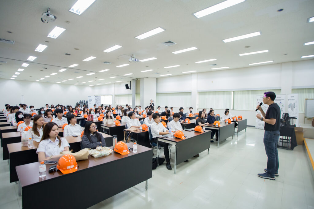 ภายในกิจกรรม นิสิตได้รับฟังการบรรยายพิเศษเกี่ยวกับวิวัฒนาการของวัสดุกรอบประตูและหน้าต่างอะลูมิเนียม เทคโนโลยีการผลิตสมัยใหม่ มาตรฐานสากล และแนวทางการประยุกต์ใช้ในงานสถาปัตยกรรมร่วมสมัย พร้อมเข้าร่วม Product Assembling Workshop การประกอบหน้าต่างจริง เพื่อเพิ่มเข้าใจโครงสร้าง รายละเอียดทางเทคนิค และมาตรฐานการติดตั้งจากผู้มีประสบการณ์ตรง